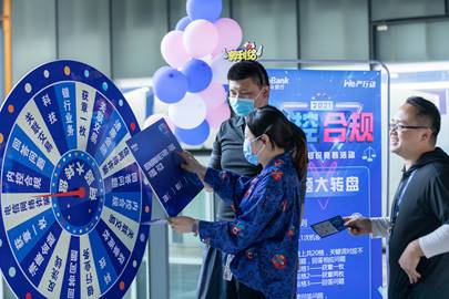 為牢固樹立銀行業從業人員合規意識,持續加強全行合規文化建設,按照中國銀保監會關于“內控合規管理建設年”的工作部署,微眾銀行于2021年11月開展“內控合規管理建設年”知識競答活動,有動感單車、呼啦圈、高爾夫球等游戲,通過趣味運動結合內控合規問答,在娛樂中強化微眾人的合規意識。